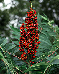 Сумах - это сухие плоды многолетнего кустарника из семейства сумаховых (Rhus coriaria L.) Второе название - уксусное дерево. Дело в том, что в листьях этого дерева полным-полно дубильных веществ - таннидов, которые иногда называют дубильной кислотой. Вероятно, от кислого привкуса листьев и родилось второе название.